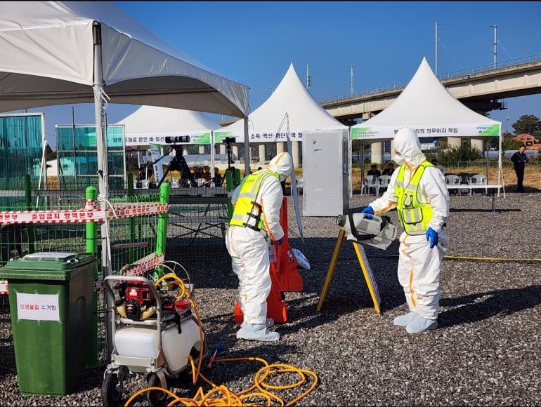 군산시 및 관계기관들도 현장훈련을 통해 ▲의심축 신고에 따른 초동 대응 및 준비사항 점검 ▲의사환축 확인 및 대응 ▲살처분 ▲상황 해제 ▲사후관리 순으로 방역조치 전 과정을 점검했다.