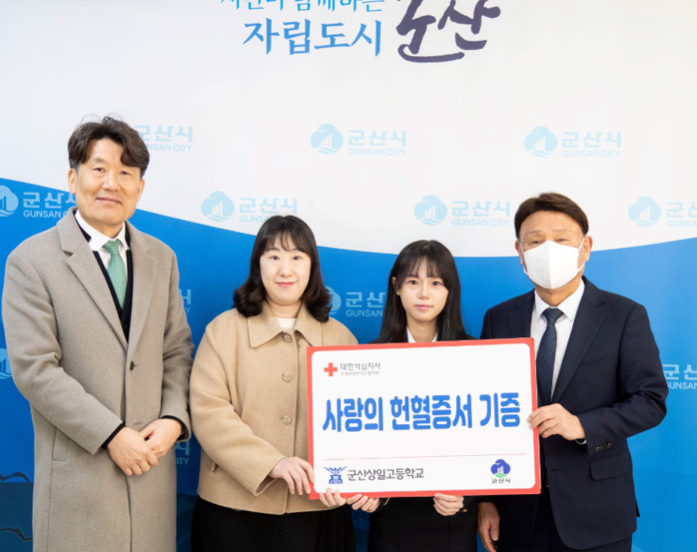 군산상일고등학교 학생들이 교내 헌혈 활동을 통해 모은 헌혈증 66매를 기부하며 생명나눔 문화 확산에 힘을 보탰다. 이번에 모인 헌혈증은 25일 대한적십자사 전북특별자치도혈액원에 전달돼 지역 내 원활한 혈액 수급 지원에 활용될 예정이다.
