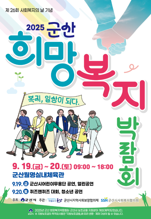 군산시가 주최하고 군산시지역사회보장협의체‧협의회가 주관하는 ‘2025 군산 희망복지박람회’가 오는 19일과 20일 월명실내체육관에서 개최된다.