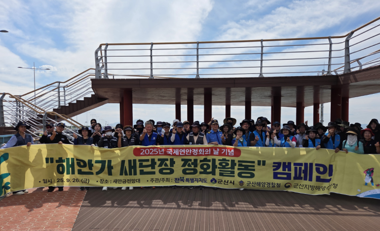 추석을 앞둔 새만금방조제 일원에서 100여 명이 힘을 모아 해양쓰레기를 수거했다. 군산시는 국제연안정화의 날을 계기로 깨끗한 바다 만들기에 앞장섰다.