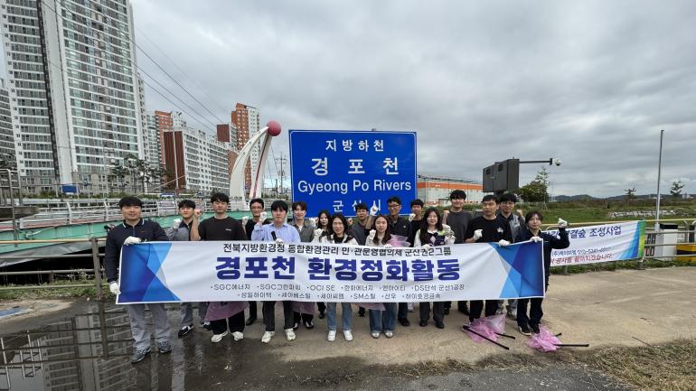 SGC에너지(주), SGC그린파워(주), 한화에너지(주), OCI SE(주), ㈜엔아이티, 성일하이텍(주), ㈜DS단석 군산1공장, ㈜세아베스틸, ㈜세아씨엠, SM스틸(주), ㈜산우, 하이호경금속(주)가 20일 군산 지방하천 경포천에서 수변, 수중 환경정화활동을 펼쳤다.
