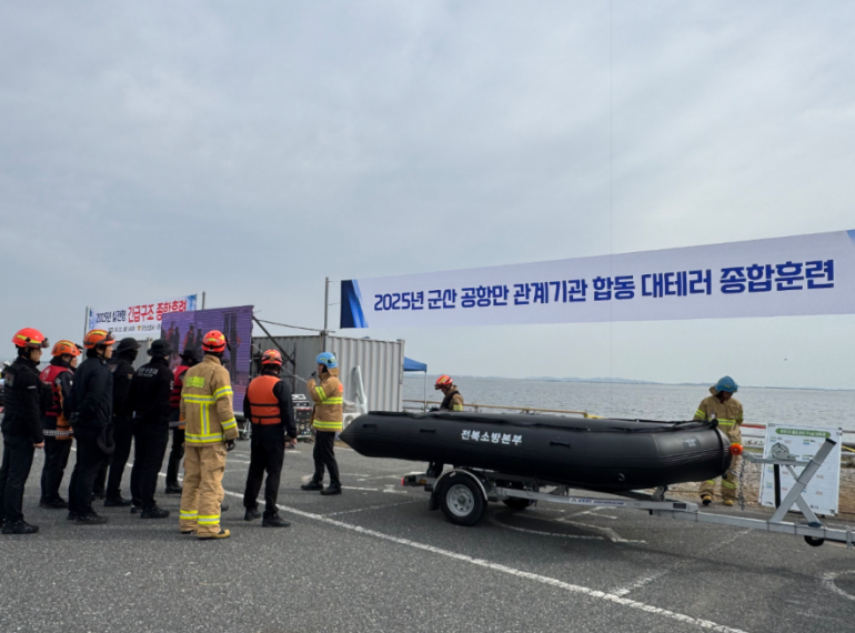 21일, 군산공항과 새만금호 일원에서 민·관·군이 참여한 대규모 대테러 종합훈련이 실시됐다. 이번 훈련에는 소방·해경·경찰·군부대·공기업·민간기업 등 총 24개 기관에서 230여 명이 참여해 실제 상황에 준하는 합동 구조작전을 전개했다.