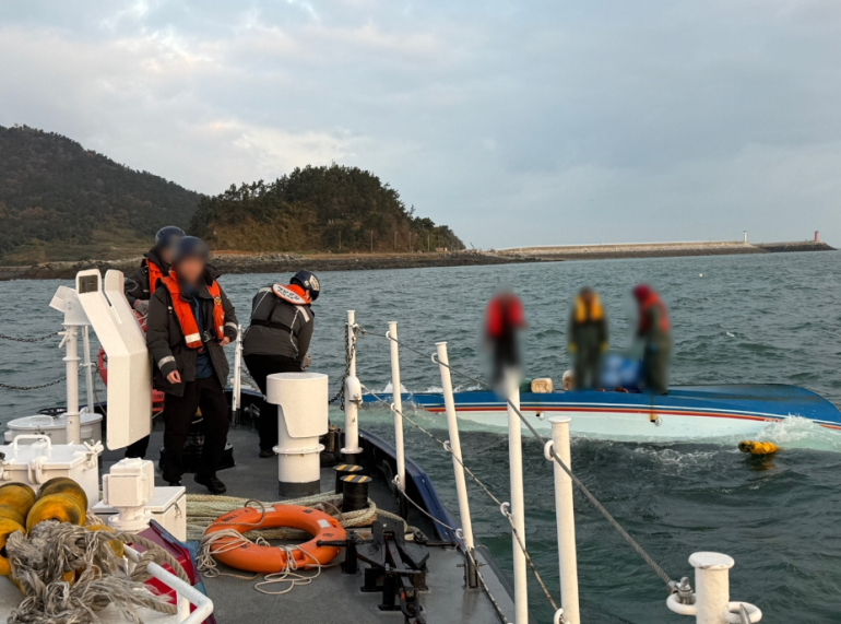 승선원들은 바다에 빠진 직후 곧바로 뒤집힌 선체 위로 올라가 구조를 기다렸고, 신고를 접수한 해경은 인근 경비함정을 급파해 17분 뒤인 오전 7시 45분께 전원을 안전하게 구조했다.
