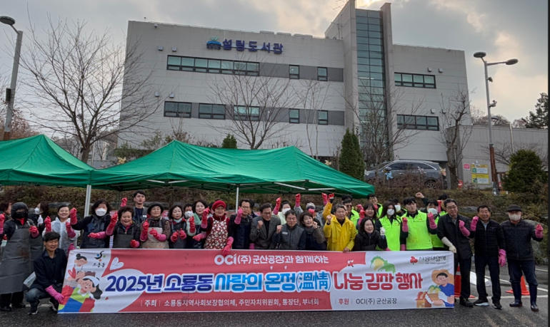 OCI(주) 군산공장은 25일 소룡동행정복지센터 앞 공영주차장에서 ‘사랑의 온정(溫情) 나눔 김장’ 행사를 열고, 임직원과 소룡동 자생단체 회원 등 100여 명과 함께 2,000여 포기의 김장김치를 담갔다.