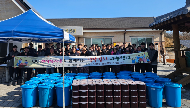 OCI㈜ 군산공장이 3일 지역사회와의 따뜻한 나눔을 실천하며 ‘2025 사랑의 김장 나눔’ 행사를 진행했다. 17년째 이어온 이번 행사에서는 공장 임직원과 결연마을 주민들이 함께 1,500포기의 김장김치를 준비해 지역아동센터와 독거노인 등 소외계층에게 전달했다.