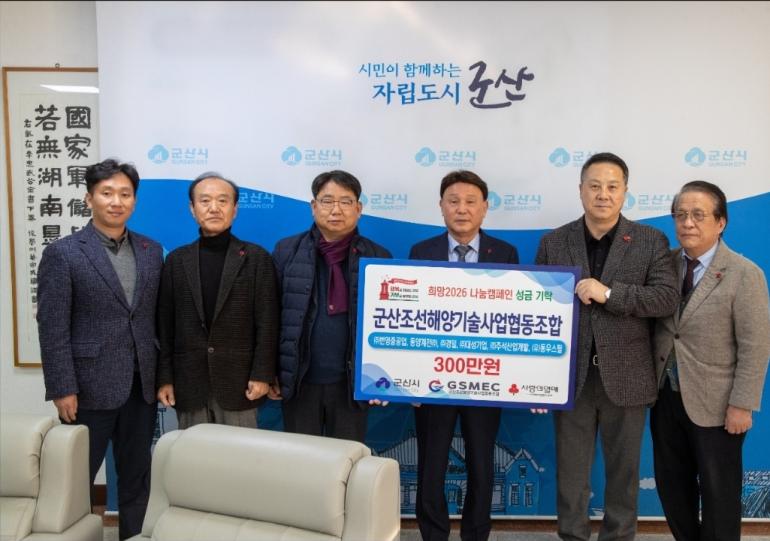 군산조선해양기술사업협동조합(이사장 김광중)이 4일 희망2026나눔캠페인에 성금 300만 원을 기탁하며 지역사회와의 상생 의지를 밝혔다.