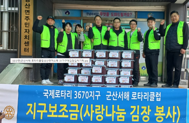 군산서해 로타리클럽이 8일 성산면 저소득 31가구를 위해 400kg 상당의 김장김치를 기탁했다.