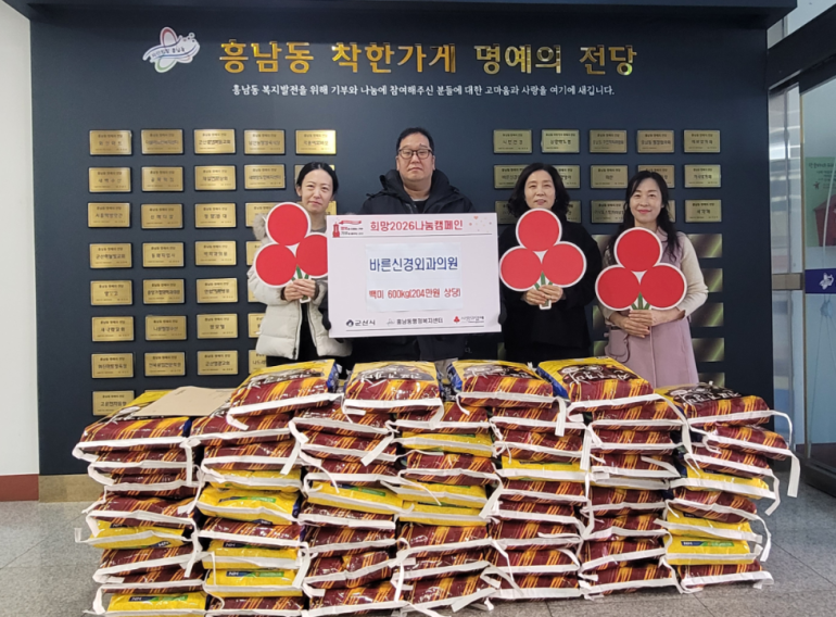 흥남동 관내 의료기관인 바른신경외과의원(원장 나기원)이 취약계층 지원을 위한 백미 600kg (10kg 60포)을 기탁해 주위의 귀감이 되고 있다.