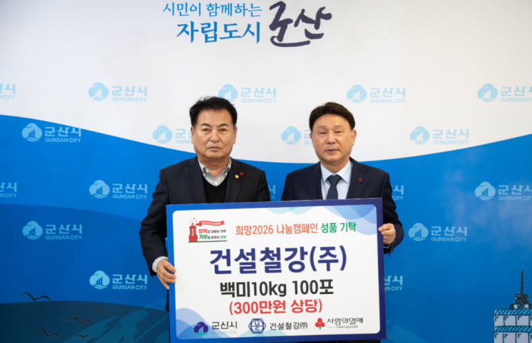 강임준 군산시장은 “건설철강(주)의 따뜻한 나눔이 연말 지역사회에 큰 힘이 되고 있다.”라며 “희망 2026 나눔 캠페인에 함께해 준 데 깊이 감사드린다.”라고 감사를 전했다.