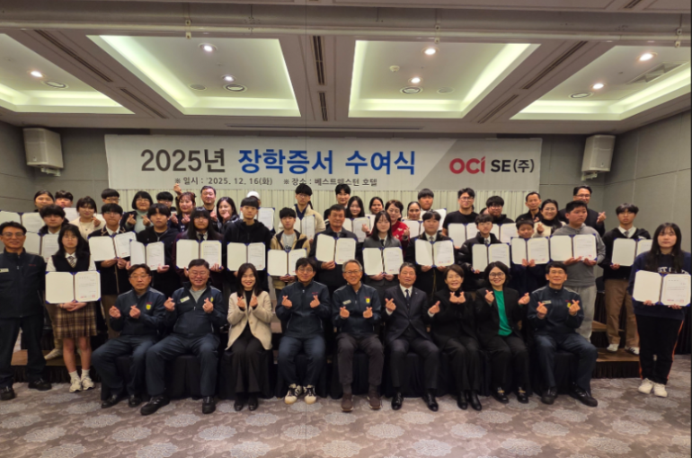 김원현 OCI SE 대표이사는 “지역사회와의 동반 성장이 기업의 지속 가능성을 높이는 중요한 기반”이라며 “앞으로도 장학사업을 비롯한 다양한 사회공헌 활동을 통해 지역과 함께 성장해 나가겠다”고 밝혔다.