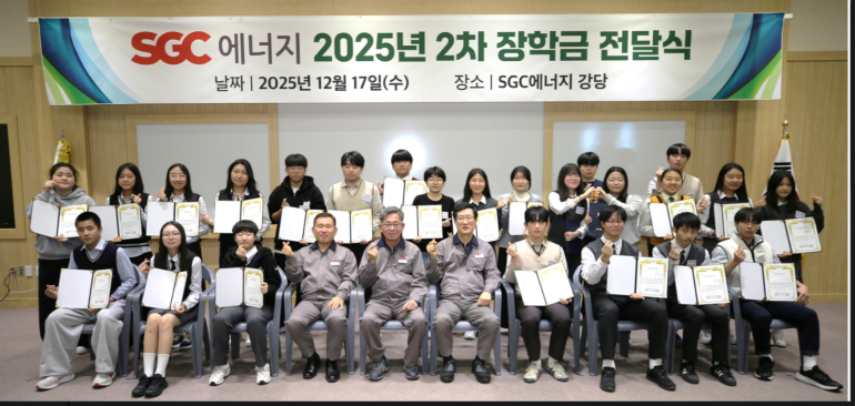 SGC에너지는 지난 17일 군산사업장에서 발전소 주변지역인 군산시와 서천군에 거주하는 중·고등학생 59명과 대학생 10명 등 총 69명을 2025년 2차 장학생으로 선발해 장학금을 지급했다.