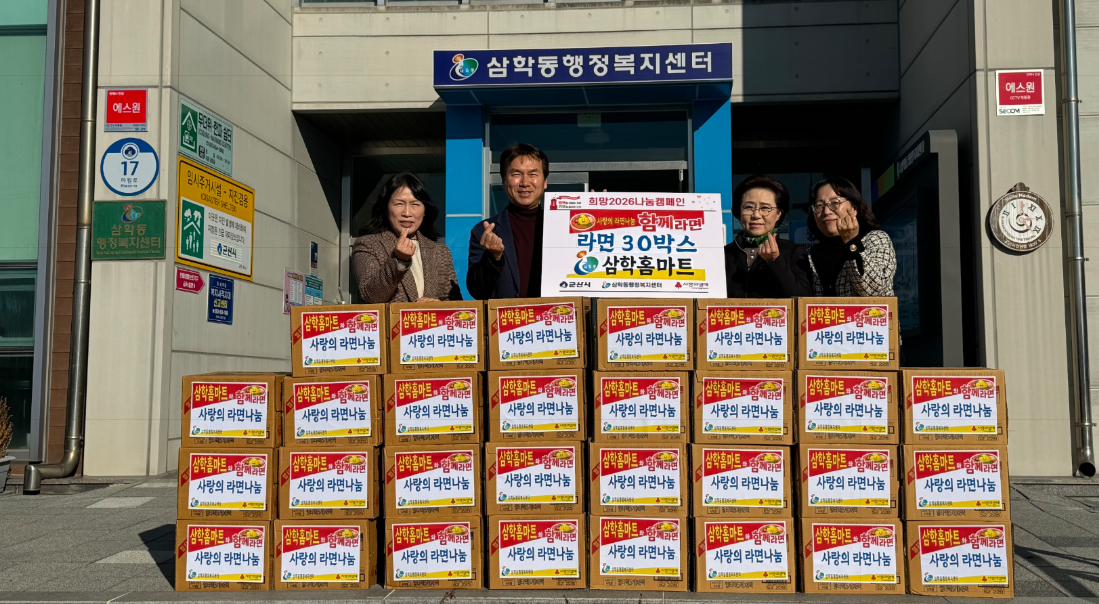삼학홈마트(대표 양은영)는 연말을 맞아 관내 취약계층을 돕기 위해 라면 30상자를 삼학동에 기부했다.