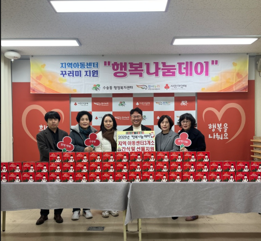 수송동 천사누리지역사회보장협의체가 성탄절을 맞아 관내 지역아동센터 3개소를 방문해 간식과 선물꾸러미를 전달하는 ‘행복나눔데이’를 실시했다. 이번 사업은 사회복지공동모금회의 지원을 받아 진행됐으며, 취약계층 아동들이 지역사회의 관심 속에서 건강하게 성장할 수 있도록 돕기 위해 마련됐다.