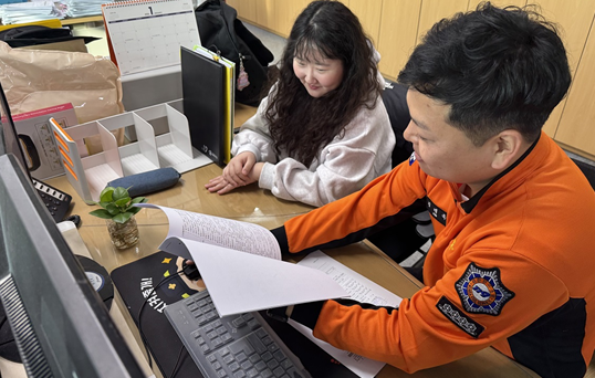참여 인턴은 광주대학교 소방행정학과 졸업생 1명과 우석대학교 소방방재학과 학생 1명 등 총 2명으로, 화재안전조사단에서 문서 정리와 자료 관리 등 행정 지원 업무를 수행하며, 화재 예방과 조사 관련 실무 전반을 경험하고 있다. 특히 ‘1인 1멘토제’를 통해 멘토와 함께 실무를 배우며, 실제 업무 과정을 깊이 이해하는 기회를 갖는다.