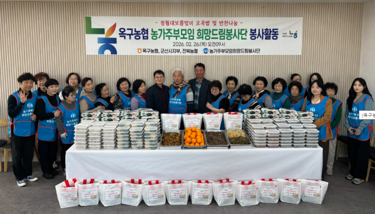 옥구농협은 지난 26일, 농가주부모임(회장 문영자) 회원들과 함께 오곡밥과 나물 반찬 나눔 행사를 가졌다. 이번 행사는 농협 복지사업의 일환으로 마련되었으며, 회원들이 직접 정성을 다해 지은 오곡밥과 고사리 등 5가지 종류의 나물을 준비했다.
