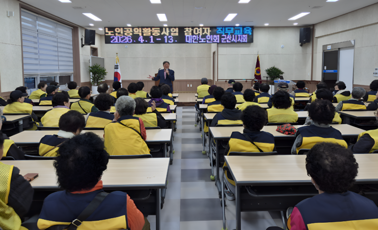 (사)대한노인회 군산시지회(지회장 이래범)가 지역 노인공익활동사업 참여자들을 대상으로 직무 및 안전교육을 진행하며, 안정적인 노인일자리 운영을 위한 기반 다지기에 나섰다.