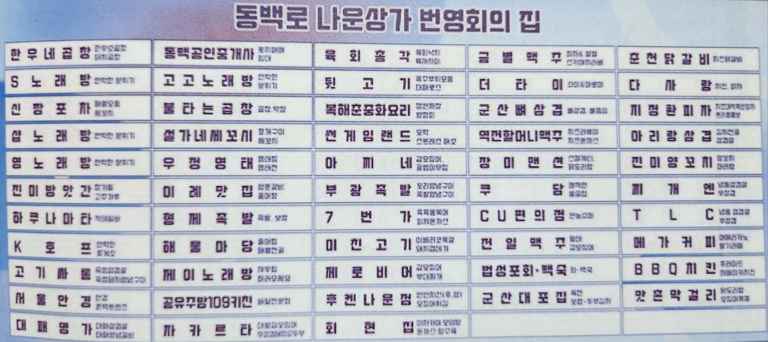 <동백상가 거리에 설치된 대형 안내판. 이 간판은 '함께 성장하는 상생'의 상징이다>