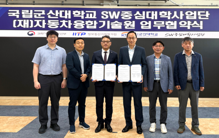 오양섭 자동차융합기술원장은 “AI 대전환 사업과 피지컬 AI 산업 전략 포럼 등을 추진하는 시점에 군산대와의 협약은 SW 역량 강화에 든든한 기반이 될 것”이라고 강조했다.