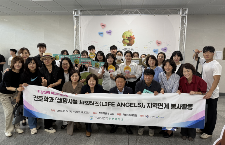 군장대학교(총장 이진숙) 간호학과 ‘생명사랑 서포터즈(LIFE ANGELS)’ 학생들이 자살예방의 날 행사에 참여하며 청년의 눈으로 본 생명존중의 메시지를 지역사회에 전했다. 학생들은 캠페인 활동과 프로그램 진행을 통해 주민들과 함께 생명의 소중함을 되새기며 의미 있는 시간을 보냈다.