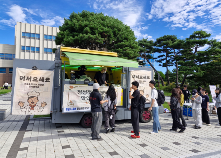 국립군산대학교는 15일 2025학년도 2학기 중간고사 기간을 맞아 학생 복지 향상을 위한 다양한 프로그램을 집중 운영한다고 밝혔다. 특히 이날 오전 9시 30분부터 11시까지 황룡도서관 앞에서 재학생 300명에게 컵밥(제육 및 돈불고기)과 음료가 무료로 제공하는 푸드트럭 간식사업을 신규로 도입해 큰 호응을 얻었다.