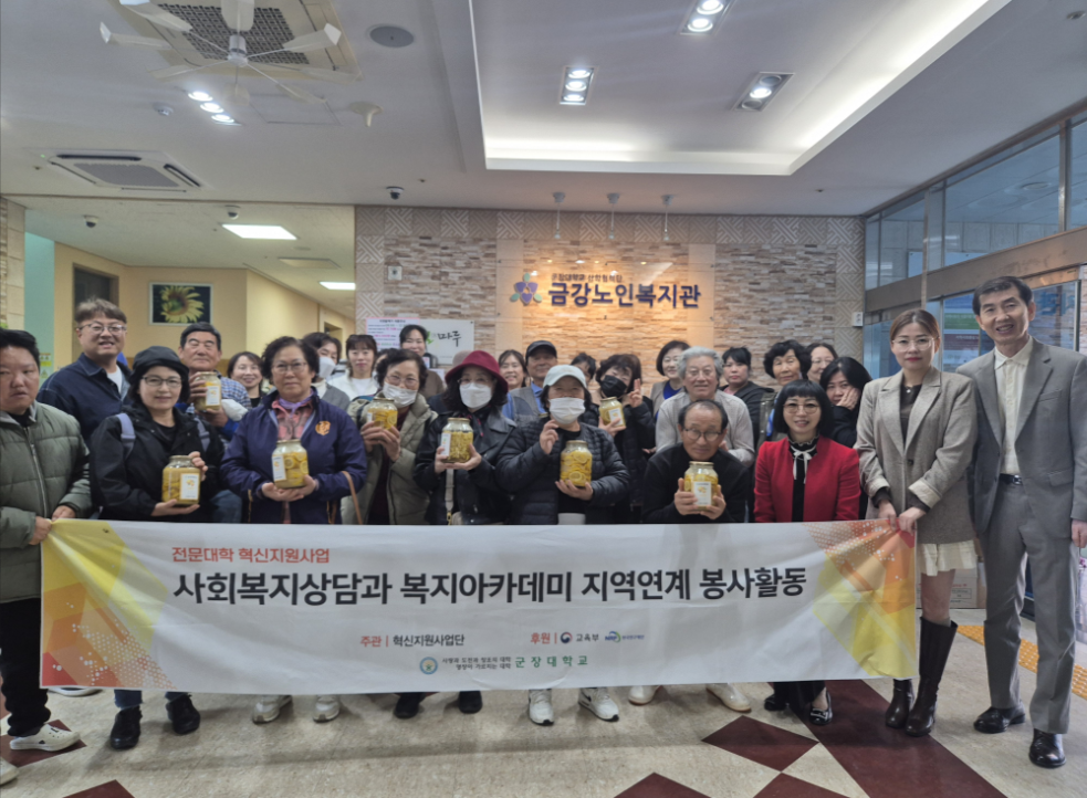군장대 사회복지상담과 복지아카데미는 지난 3일 금강노인복지관을 방문해 직접 만든 수제 과일청(생강, 자몽, 레몬, 오미자)을 전달하고, 어르신들과 이야기를 나누는 말벗 봉사활동을 진행했다. 이번 봉사활동은 지역사회 내 취약계층에게 따뜻한 관심과 정서적 위로를 전하기 위해 마련됐다.