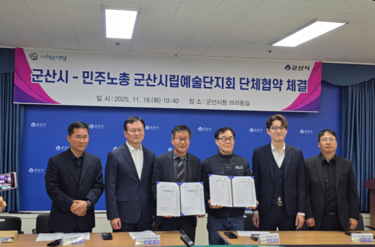 군산시와 민주노총 공공운수사회서비스노조 군산시립예술단지회가 시립예술단의 운영 안정화와 지속적인 발전을 위한 단체협약을 18일 공식 체결했다. 이번 협약은 조례안을 둘러싼 시·노조·시의회 간의 갈등을 해소하고, 시립예술단 운영 전반을 안정적으로 다듬는 계기를 마련했다는 점에서 의미가 크다.