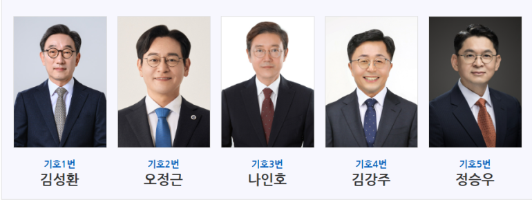 이번 총장선거에는 ▲기호 1번 김성환 철학과 교수(60) ▲기호 2번 오정근 조선공학과 교수(49) ▲기호 3번 나인호 인공지능융합학과 교수(60) ▲기호 4번 김강주 환경공학과 교수(60) ▲기호 5번 정승우 환경공학과 교수(59) 등 총 5명이 등록했다.