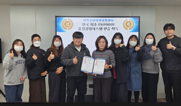 오주영 센터장은 “이번 ISO9001 인증은 전국 최초라는 점에서 더욱 의미가 크다.”라며 “앞으로도 지속적인 품질 개선과 체계적인 사업 운영을 통해 자활참여자의 자립 역량 강화와 지역사회 발전에 기여하겠다.”라고 전했다.