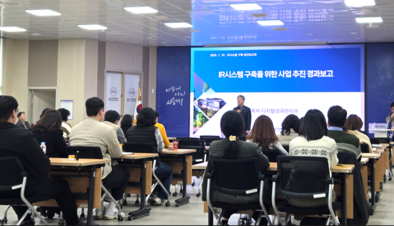 지난 15일 국립군산대는 대학본부 대회의실에서 ‘IR시스템 구축 중간보고회 및 사용자 교육’을 개최하고, 데이터 기반 대학 경영 혁신을 위한 추진 성과를 점검했다. 이번 보고회는 지난해 8월 착수한 IR시스템 구축 사업의 진행 상황을 공유하고, 향후 시범 운영을 앞두고 교직원의 이해와 참여를 높이기 위해 마련됐다.