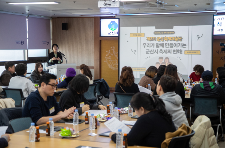 군산시가 25일 제2기 축제시민평가단 위촉식과 워크숍을 열고 ‘군산축제채움단’의 본격적인 활동을 알렸다. 이번에 위촉된 평가단은 연임 단원 18명과 신규 단원 22명 등 총 40명으로, 20대부터 60대까지 다양한 연령층이 참여해 경험과 참신함을 함께 담았다.