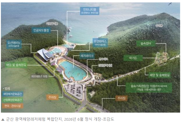고군산군도 관광권역의 핵심 거점이 될 오션팔레트는 ▲액티비티존(인공 서핑장, 잠수풀, 파도풀) ▲힐링존(인피니티풀, 레저레이크) ▲캠핑존(숲속 캠핑장) 등 탄탄한 인프라를 갖췄다.