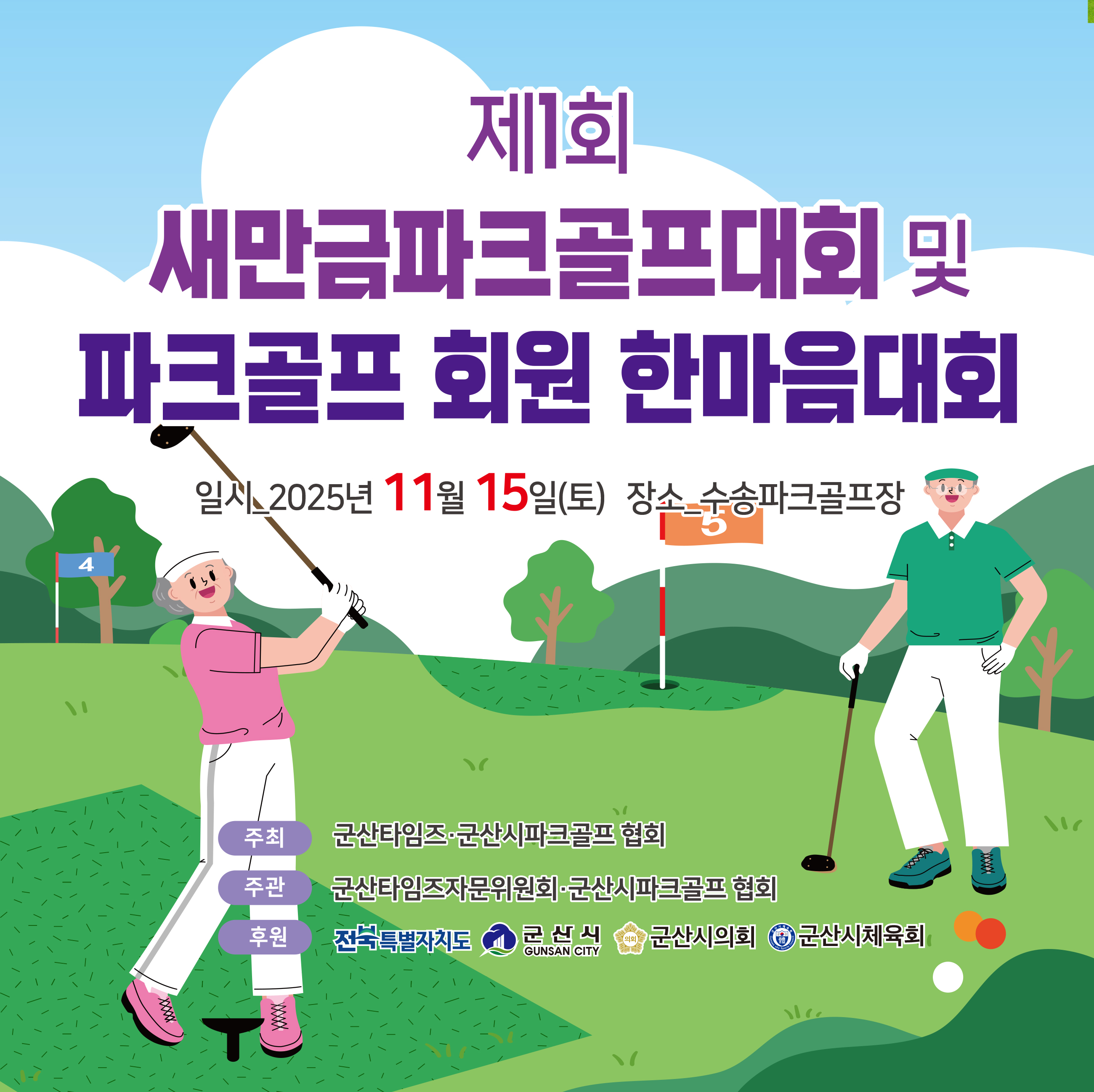 군산타임즈와 군산시파크골프협회가 공동 주최하고, 군산타임즈 자문위원회와 군산시파크골프협회가 주관한 ‘제1회 새만금파크골프대회 및 파크골프 회원 한마음대회’가 15일 군산수송파크골프장에서 성황리에 개최됐다. 이번 대회는 250여 명이 참가해 첫 회 대회임에도 기대 이상의 열기와 참여율을 기록하며, ‘군산이 만들면 다르다’는 지역의 저력을 보여준 자부심 있는 행사로 평가받았다.