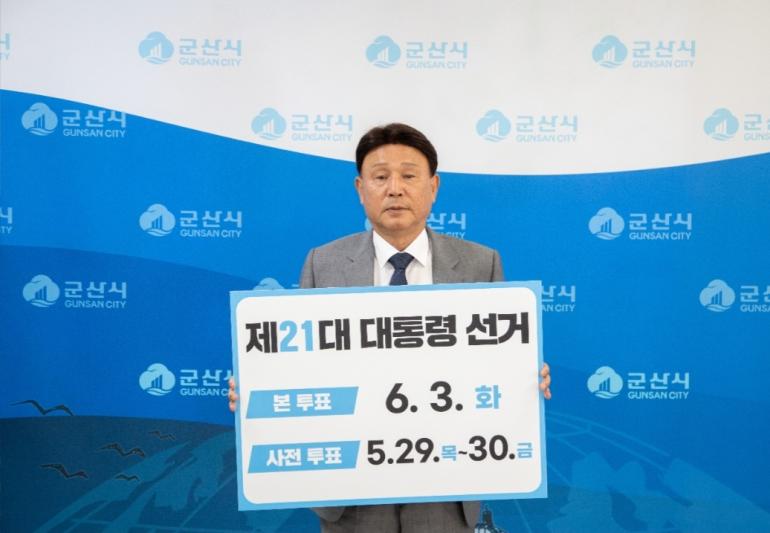 한편 제21대 대통령선거 사전투표는 5월 29일(목)부터 30일(금)까지 이틀간 군산 관내 27개 사전투표소에서 오전 6시부터 오후 6시까지 진행된다. 본투표는 6월 3일(화), 오전 6시부터 오후 8시까지 78개 투표소에서 실시된다.
