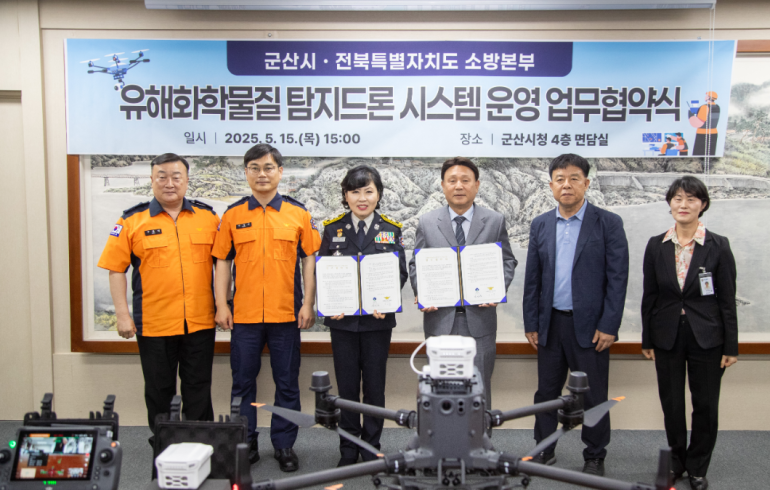 15일 군산시는 전북특별자치도 소방본부와 손잡고 ‘유해화학물질 탐지드론 기술 협력’을 위한 업무협약을 체결했다.