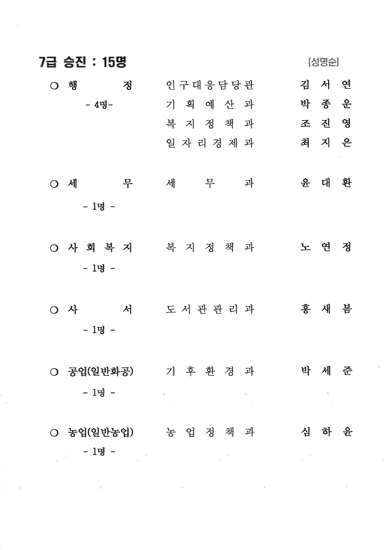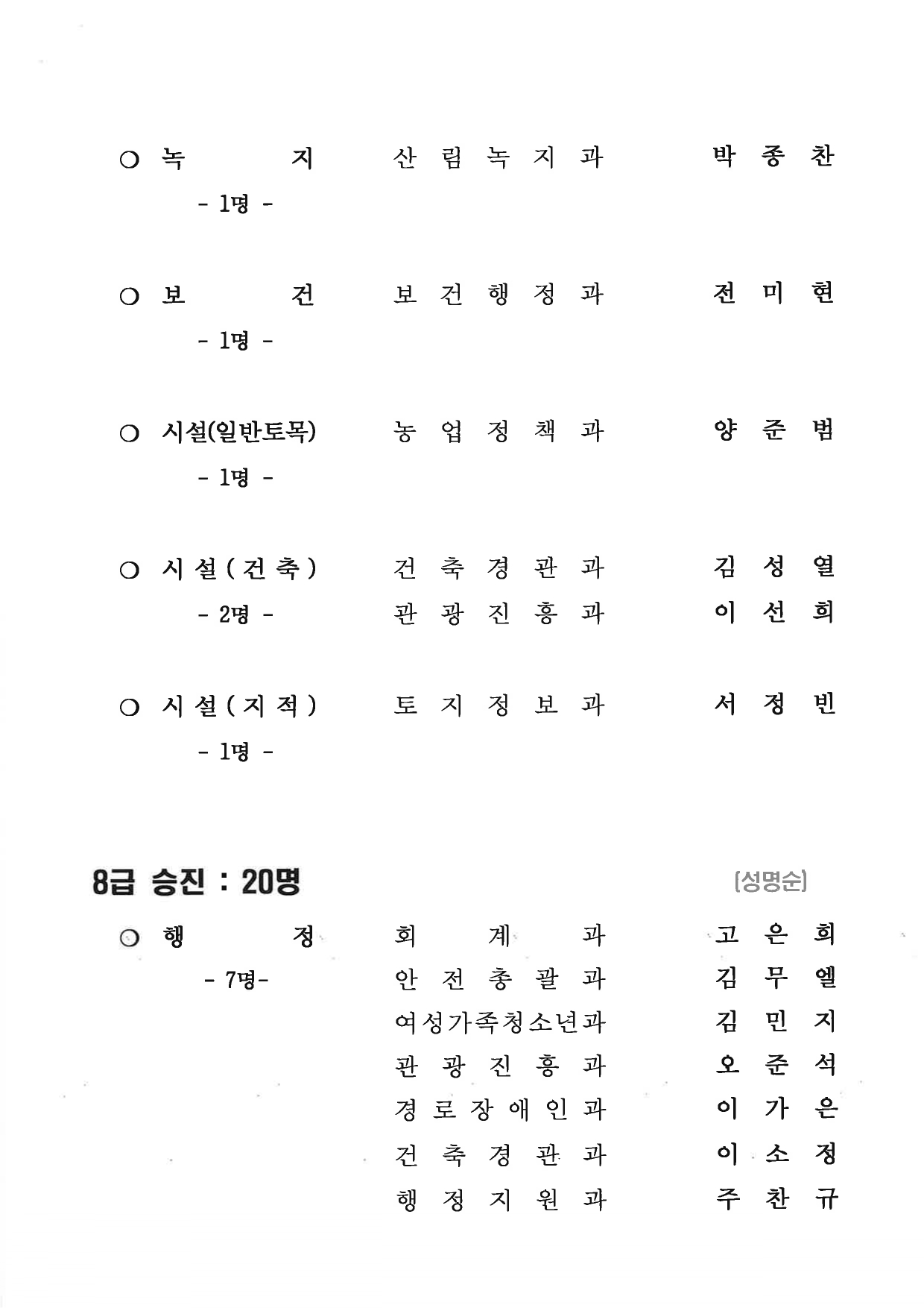이번 인사에서는 직급승진자 52명(6급 17명, 7급 15명, 8급 20명)과 5급 승진의결자 11명이 포함됐다.