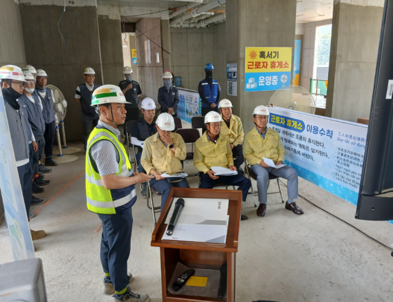 더불어, 현장 관리 측에 “폭염이 심한 시간대에는 작업 중단 및 충분한 휴식이 우선이며, 만일 중단이 어렵다면 주기적인 휴식과 물, 식염 포도당 등을 지급하라”고 강조했다. 또한 폭염 저감 시설의 정상적 운영 및 현장 근로자들의 건강관리에 유의해달라고도 당부했다.