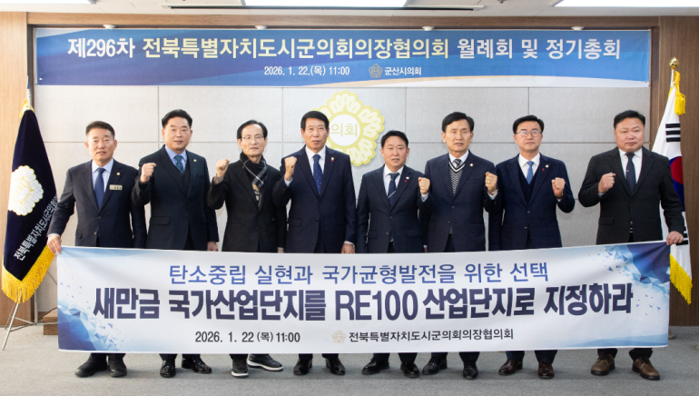 군산시의회(의장 김우민)가 22일 제296차 월례회 및 정기총회를 개최하고, 전북 지역 현안 해결을 위한 다양한 방안을 논의했다.