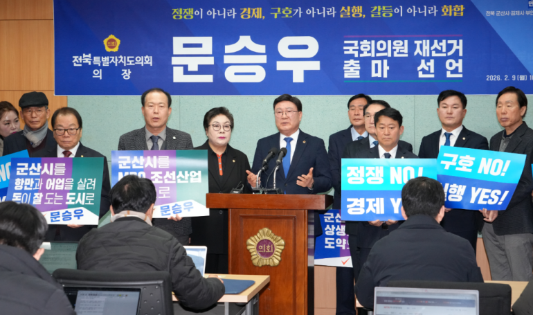 문 의장은 이날 전북도의회 브리핑룸에서 기자회견을 열고 “군산이 다시 도약하려면 갈등을 조정하고 시민의 힘을 하나로 모을 정치력이 필요하다”고 밝혔다. 이어 “도의회 행정자치위원장과 의장으로 통합과 성과를 만들어낸 경험을 바탕으로 정치적 혼란을 수습하고 침체된 군산경제를 다시 일으켜 세우겠다”며 출마 이유를 설명했다.