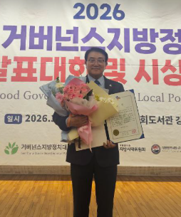 강 의원은 지난 16일 개최된 ‘2026 거버넌스지방정치대상 공모대회’에서 지방의원 부문 ‘주민생활편익확대 분야 우수상’을 수상했다고 밝혔다. 지난해에 이은 2년 연속 수상이다.