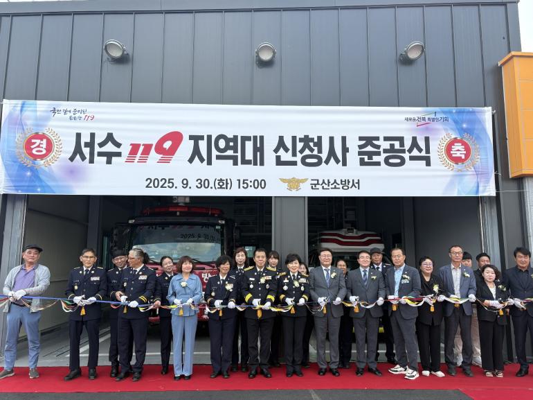 군산소방서가 지난달 30일 서수119지역대 신청사 준공식을 열고 지역 안전을 위한 새로운 출발을 알렸다.