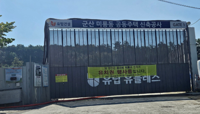 군산시 미룡동에서 ‘10년 안심 임대주택’을 내세우며 건설 중인 ‘은파호수공원 유탑유블레스’가 이달 2일 시공사 유탑건설의 법정관리 신청으로 공사가 전면 중단됐다. 이 때문에 시공사가 대신 납부하던 중도금 이자 대납이 끊기면서 계약자들은 매달 수십만 원의 ‘이자 폭탄’을 떠안게 됐고, 입주를 기다리던 378세대는 불안 속에 하루하루를 보내고 있다.