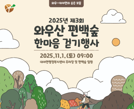 오는 11월 1일 대야면 행정복지센터와 와우산 편백숲 일원에서 ‘제3회 한마음 걷기 행사’가 열린다.