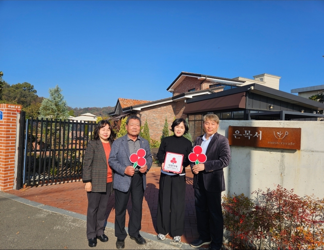 군산시 개정동지역사회보장협의체는 12일, 개정동 쌍천로 61에 위치한 ‘카페 은목서’를 착한가게 19호점으로 신규 등록하고 현판을 전달했다.
