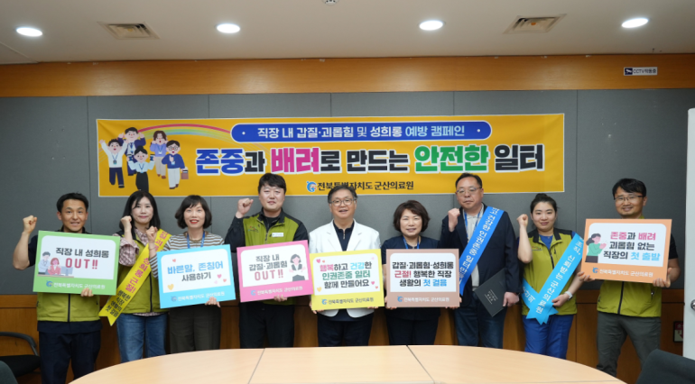 직장 내 괴롭힘과 갑질 문제에 대한 사회적 관심이 높아지는 가운데, 군산의료원이 상호 존중 문화를 강조하는 조직문화 개선 활동에 나섰다. 노사가 함께 참여하는 방식으로 현장 중심의 인식 전환을 끌어내겠다는 취지다.
