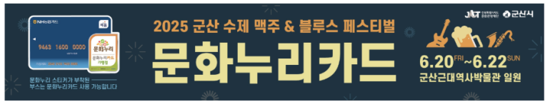 군산시가 오는 6월 20일부터 22일까지 열리는 ‘2025 군산 수제맥주&블루스 페스티벌’에서 통합문화이용권(문화누리카드) 임시가맹점을 운영하며, 누구나 향유할 수 있는 열린 축제를 만들어간다. 시민과 관광객에게는 다양한 수제맥주와 라이브 공연을 즐길 수 있는 이색 문화 체험의 장이, 취약계층에게는 문화 접근성을 높이는 계기가 될 것으로 기대된다.