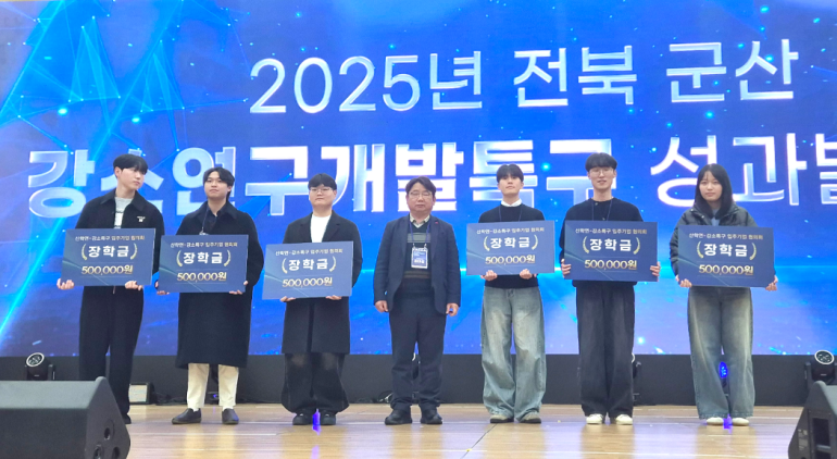 국립군산대학교 산학연협력단지 입주기업들이 뜻을 모아 재학생 학업 지원에 나서며 산학연 협력의 의미를 학생 교육으로 확장하고 있다. 국립군산대학교 산학연협력단지조성사업단은 9일 입주기업 협의회가 재학생 6명에게 총 300만 원의 장학금을 수여했다고 밝혔다.