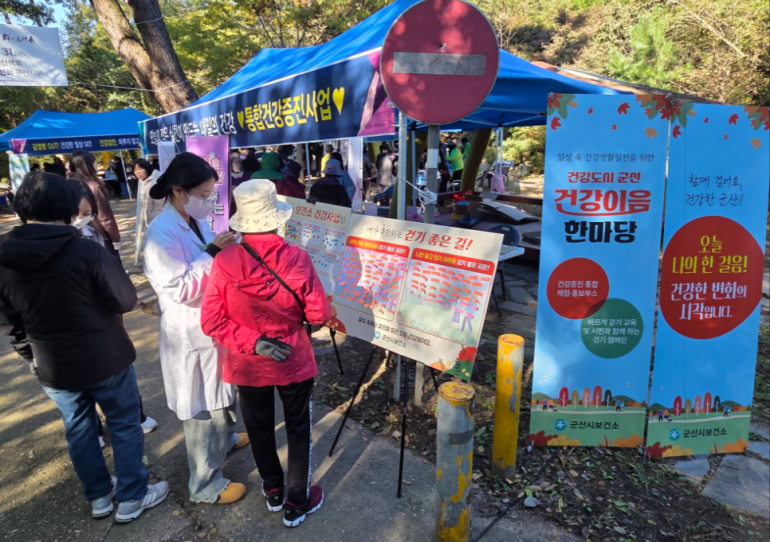 군산시보건소가 28일 월명공원에서 시민들의 일상 속 건강생활 실천 분위기 확산을 위해 통합건강증진 캠페인 ‘건강도시 군산, 건강이음 한마당’을 개최했다.   이번 행사는 시민들이 건강관리의 중요성을 인식하고 다양한 건강 정보를 접할 수 있도록 마련된 자리로, 통합건강증진 캠페인의 하나로 진행됐다.